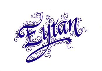 Names can be written in any combination of English and Hebrew. A flourish that reflects some design element from the invitation can be added.